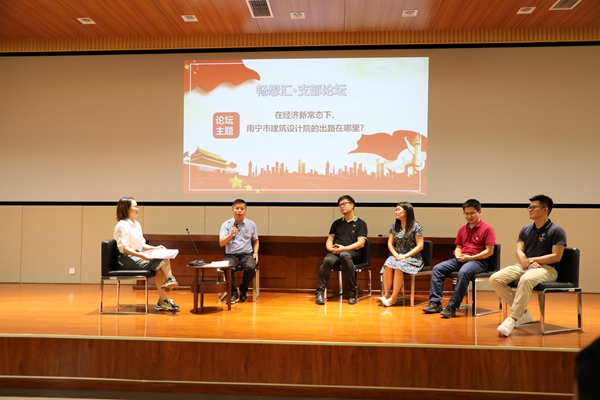 活動(dòng)在奏唱國(guó)歌中拉開(kāi)序幕,“暢想?yún)R·支部論壇”是本次主題黨日的重點(diǎn)內(nèi)容。在蔣晏平同志的主持下,黃磊群、何奇芳、王維紅和覃敏貴等4位黨員以論壇嘉賓身份圍繞“在經(jīng)濟(jì)新形勢(shì)下,南寧市建筑設(shè)計(jì)院的出路在哪里?”這一主題進(jìn)行了激烈而深入的探討,主持人還不時(shí)與場(chǎng)下的黨員互動(dòng),大家結(jié)合自己的工作實(shí)際,各抒己見(jiàn),暢所欲言,碰撞出更多新思路、新方向的火花。其中王維紅同志提出的基層黨建工作是黨的組織建設(shè)的重要環(huán)節(jié),是基層單位完成各項(xiàng)工作任務(wù)的根本保證,因此單位的發(fā)展必須以黨建工作為引領(lǐng)的觀點(diǎn)得到了廣大黨員的認(rèn)同,會(huì)場(chǎng)響起熱烈的掌聲。