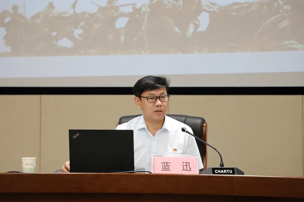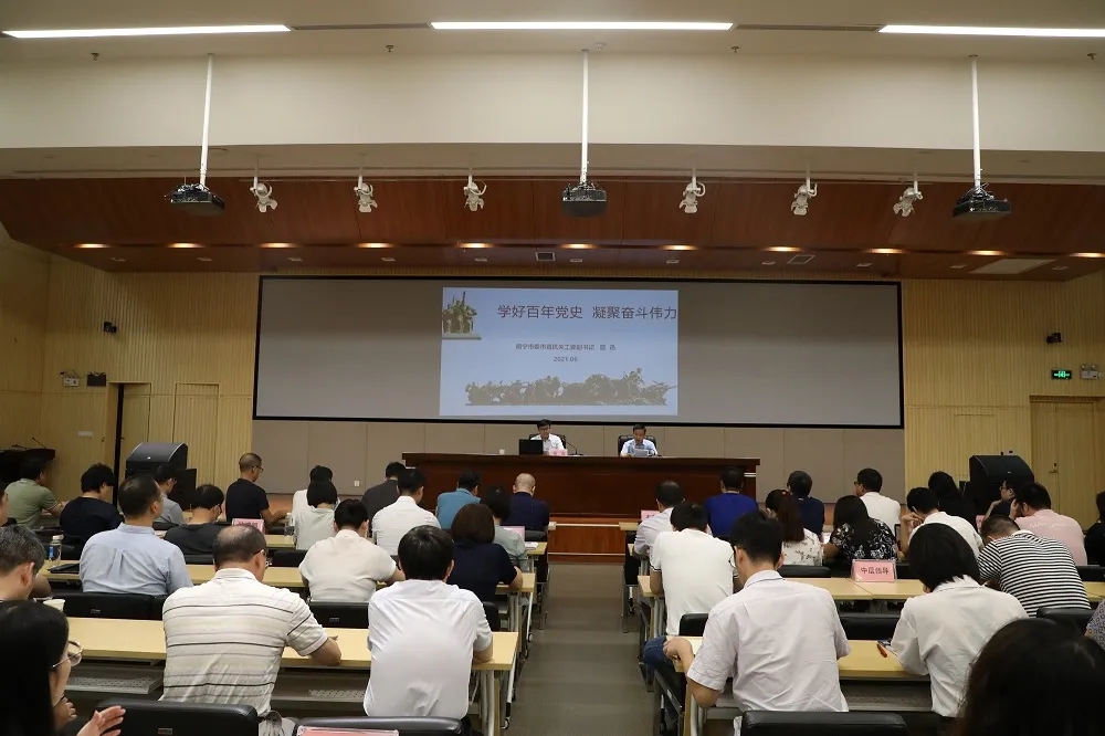 為幫助公司黨員干部更好地理解和開展黨史學(xué)習(xí)教育,6月24日,公司黨委邀請(qǐng)了南寧市委市直機(jī)關(guān)工委副書記藍(lán)迅為公司黨員干部上了一堂生動(dòng)的黨史學(xué)習(xí)教育專題黨課,公司黨委書記韋文學(xué)主持會(huì)議,公司全體黨員和中層以上領(lǐng)導(dǎo)干部近160余人現(xiàn)場聆聽了專題黨課。