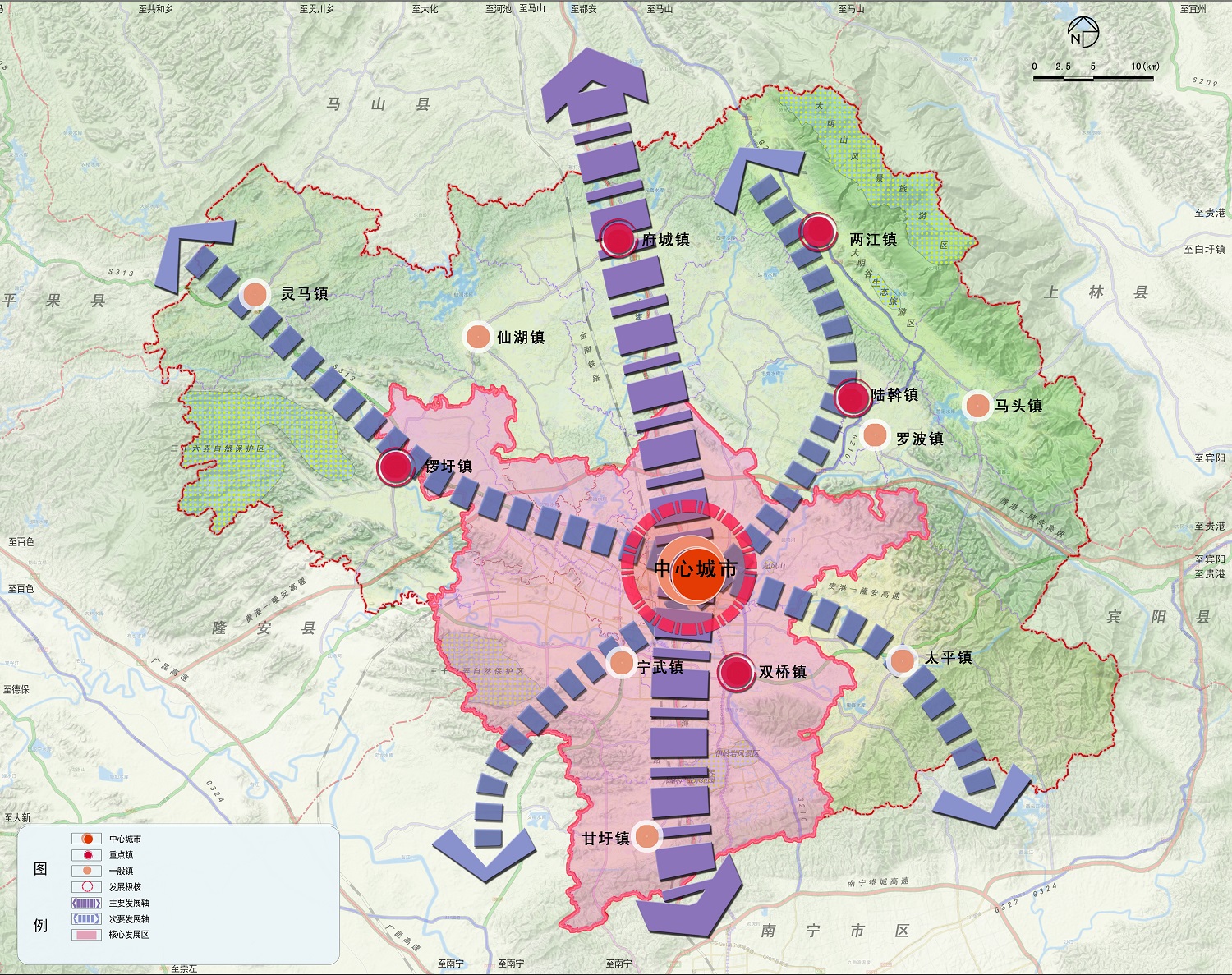 規(guī)劃概況:以科學(xué)發(fā)展觀為指導(dǎo),深入推 進(jìn)新型城鎮(zhèn)化,順應(yīng)武鳴縣經(jīng)濟(jì)發(fā)展新常 態(tài),強(qiáng)化創(chuàng)新驅(qū)動,推動轉(zhuǎn)型發(fā)展,面向 東盟開發(fā)開放,將武鳴縣建設(shè)成為環(huán)境生 態(tài)宜居、經(jīng)濟(jì)多元高效、城鄉(xiāng)融合共進(jìn)、 壯鄉(xiāng)特色鮮明的中國西部強(qiáng)縣,打造“山 水大武鳴,魅力新壯都”。