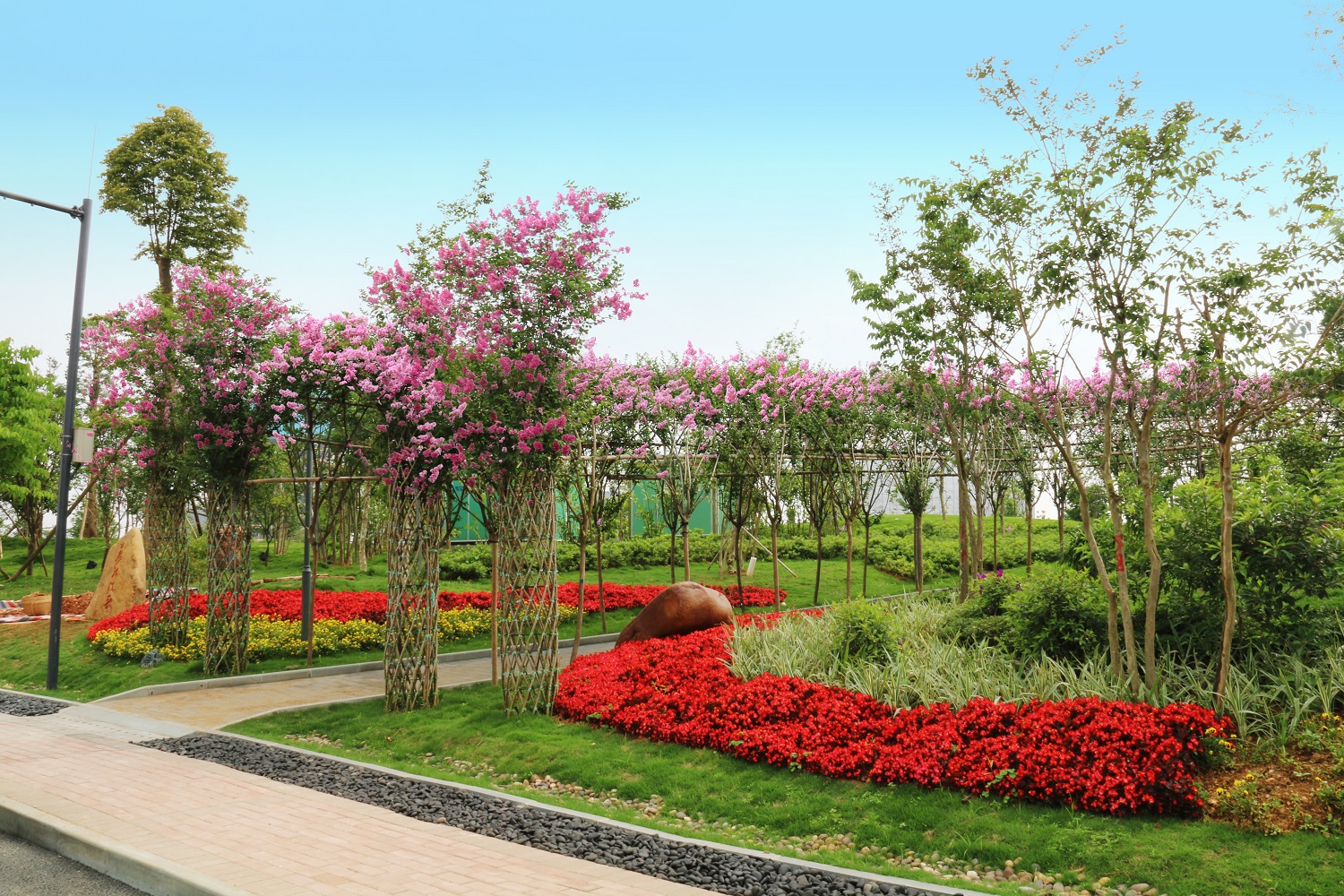 項目特色:設(shè)計因地制宜、依山就勢,結(jié)合山地建筑設(shè)計、坡面生態(tài)修復等景觀手法解決現(xiàn)狀高差過大、土質(zhì)疏松等問題,采用生態(tài)保護設(shè)計手法,結(jié)合山形地貌建設(shè)廣西首個紫薇專類園和南寧市首個戶外趣味山地自行車賽道;利用豎向變化設(shè)計全園雨水收集利用系統(tǒng),實現(xiàn)“海綿城市”構(gòu)想。