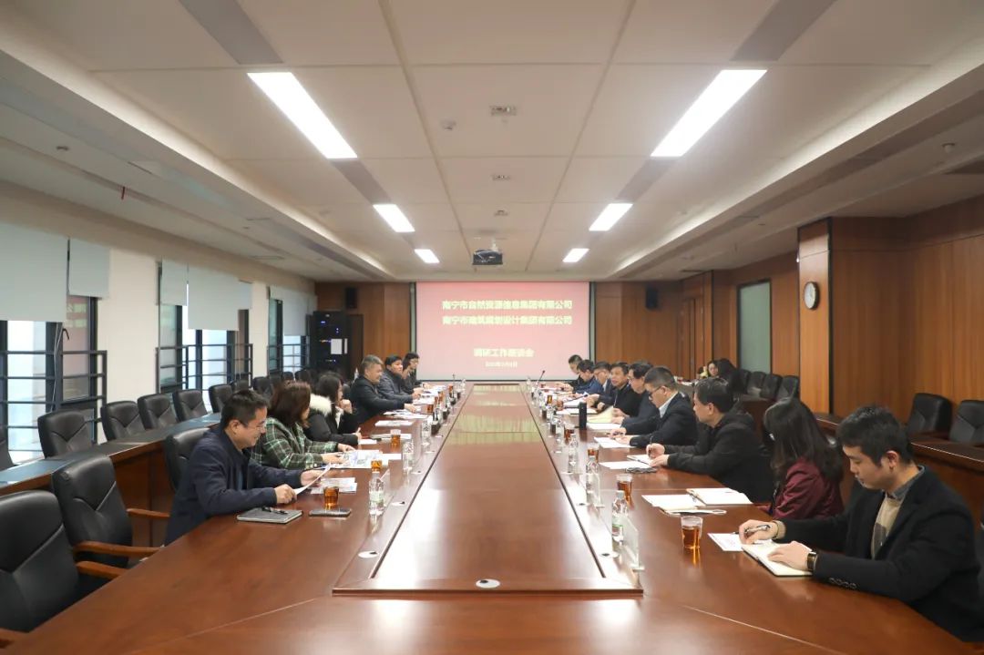 近日,南寧市自然資源信息集團(tuán)有限公司黨委書記、董事長、總經(jīng)理梁戰(zhàn)帶隊(duì)到我集團(tuán)公司交流座談。集團(tuán)黨委書記、董事長韋文學(xué)參加會(huì)議,集團(tuán)總經(jīng)理、副董事長馮江泉主持座談會(huì)。