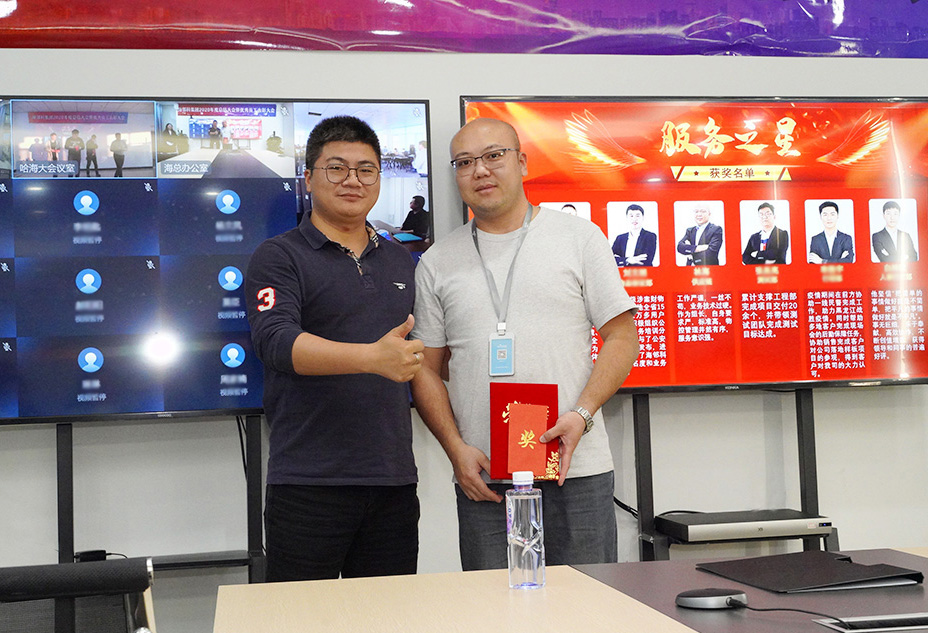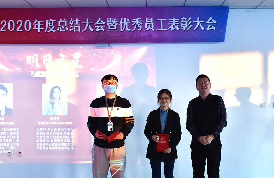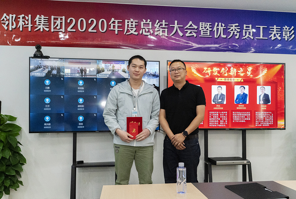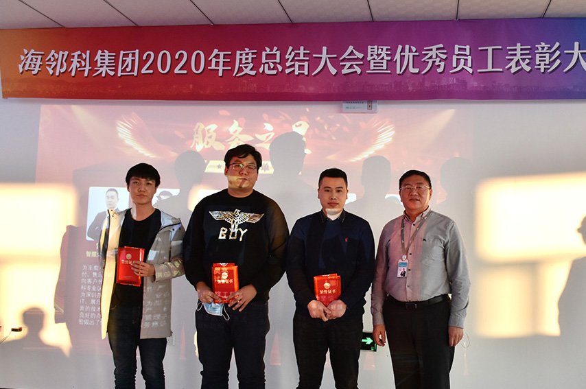 會上,在激昂的音樂中,公司領(lǐng)導為在2020年度工作中表現(xiàn)突出、取得優(yōu)異成績的優(yōu)秀員工和優(yōu)秀團隊頒發(fā)了獎狀和獎品,勉勵大家勝不驕、敗不餒,繼續(xù)保持昂揚的斗志,發(fā)揚艱苦奮斗的精神,不負韶華,創(chuàng)新奮進,取得更大的成績,使海鄰科發(fā)展再上新臺階。