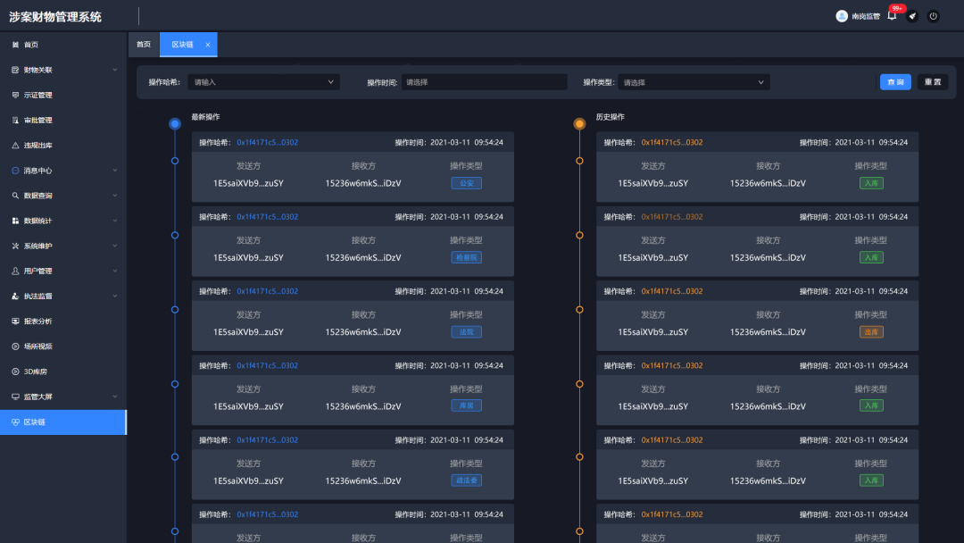 海鄰科跨部門(mén)涉案財(cái)物管理平臺(tái),運(yùn)用區(qū)塊鏈的非對(duì)稱加密和授權(quán)技術(shù)、分布式賬本、智能合約和共識(shí)機(jī)制形成的自有核心技術(shù),在涉案財(cái)物入庫(kù)、出庫(kù)、移送、處置時(shí),對(duì)涉案財(cái)物的案件、屬性、流轉(zhuǎn)、存儲(chǔ)等關(guān)鍵信息進(jìn)行加密上鏈。保證數(shù)據(jù)的可溯源、防丟失,杜絕惡意篡改涉案財(cái)物相關(guān)數(shù)據(jù),保障案件執(zhí)法公開(kāi)、透明,讓人民群眾在每一個(gè)司法案件中感受到公平和正義!