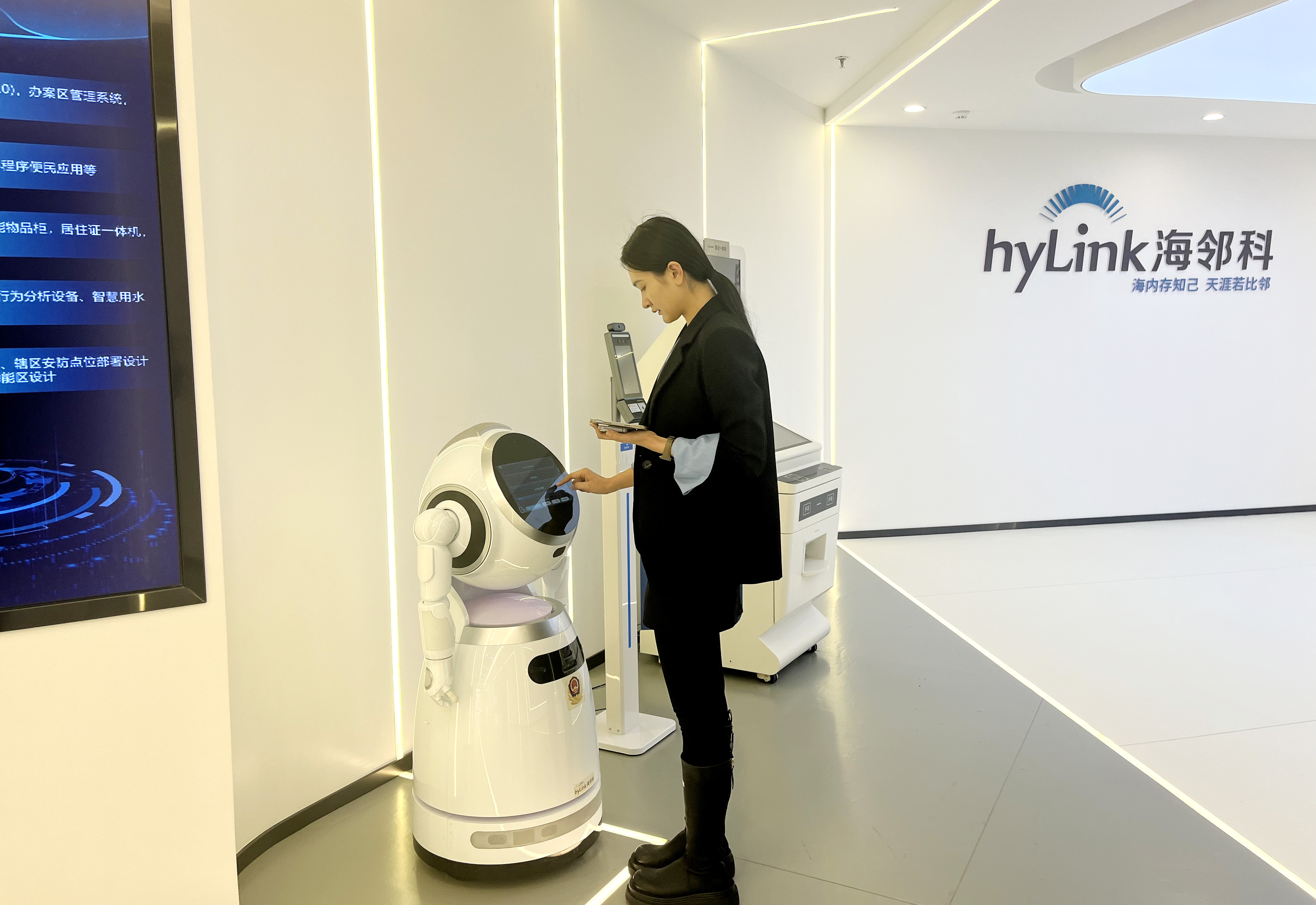 在海鄰科數(shù)字化展廳內(nèi),政務(wù)一體化機(jī)器人、智慧警務(wù)和智慧綜治系統(tǒng)、5G智慧公車(chē)系統(tǒng)及裝備、智能消防系統(tǒng)和裝備等一系列軟件系統(tǒng)平臺(tái)和智能硬件裝備,展示了海鄰科在基層社會(huì)治理數(shù)字化方面的技術(shù)創(chuàng)新和研發(fā)生產(chǎn)能力。