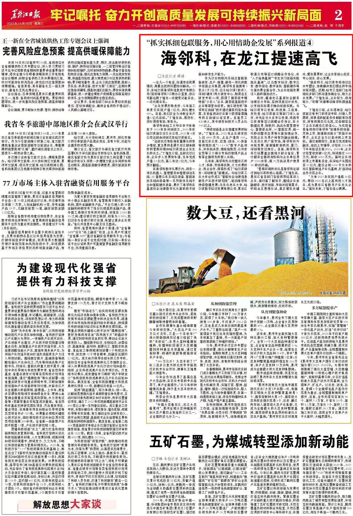 黑龍江日?qǐng)?bào):包聯(lián)助企促發(fā)展|海鄰科,在龍江提速高飛